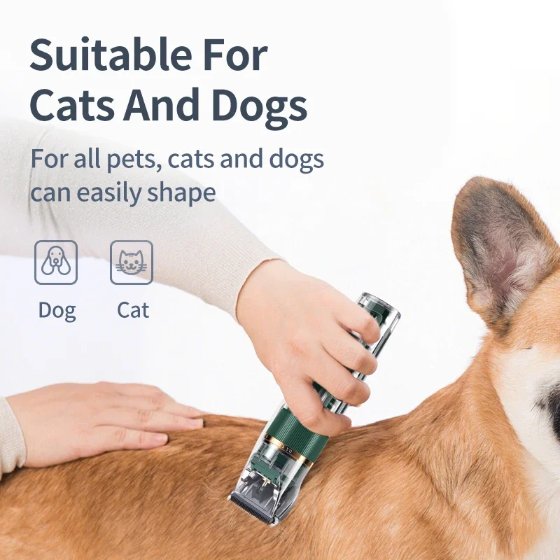 The ROJECO LED Pet Hair Trimmer is equipped with a rechargeable 12000mAh battery, providing up to 90 minutes of continuous use after a 2.5-hour charge. With a powerful 5W motor, it operates quietly at three adjustable speeds (low, medium, high), suitable for both small and large pets. The titanium ceramic blades are designed to be durable, sharp, and provide a precise trim, even for sensitive areas. This trimmer includes 3 clipping combs (3mm, 6mm, 9mm, 12mm) and five adjustable blade lengths (0.8mm, 1.1mm, 1.4mm, 1.7mm, and 2.0mm), ensuring versatility for various pet grooming needs. The clippers are also IPX7 waterproof, making them easy to clean after use.
